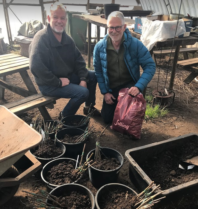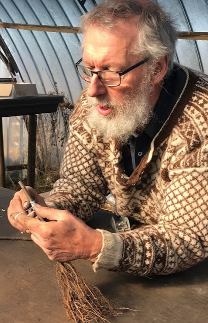 Vi var til podekursus hos Karsten ( naturkarsten.dk ), som selv har over 400 forskellige æblesorter på sin grund i nærheden af Gundbæk. Han sælger også grundstammer og vi valgte den der hedder M7, som er middelsvag voksende. Vi havde podekviste fra 10 forskellige æblesorter med og vi valgte at købe 100 grundstammer af Karsten.