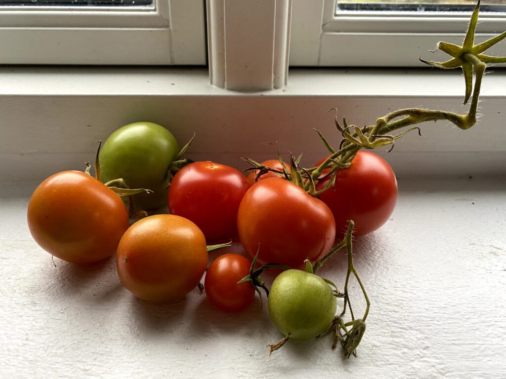 Jeg har lige høstet de sidste tomater i min uopvarmet, men frostfri udestue. De store, Moneymaker, smager ikke af noget, men cherrytomaterne er stadig gode.