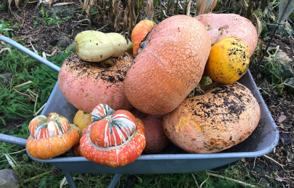 Jeg kunne høste en enkelt butternut. Det var købefrø af sorten “cucurbita moschata”. Planternet af denne sort var ikke så frodig og kunne ikke konkurrere med de andre sorter. Hvis jeg så den igen næste år skal den nok have lidt ekstra opmærksomhed og måske en plads for sig selv.