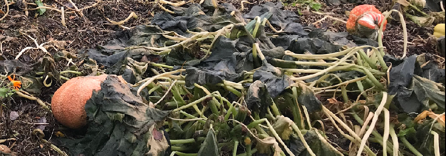 I år (2019) kom den første frost allerede den 7. oktober. Bare en enkelt nat, men det var nok. Tomatillo, tomater, græskar og squash samt masser af andre ting er døde.