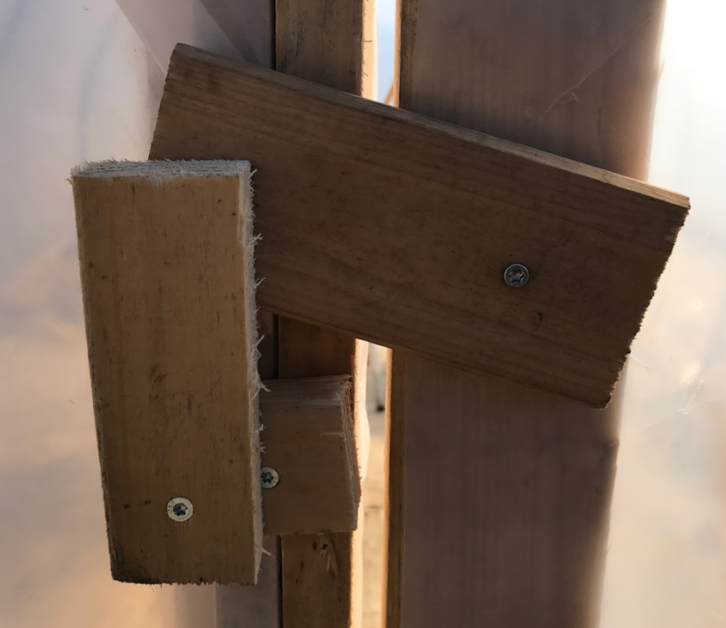 Der skulle hurtig flækkes nogle halve lægter i kvarte og den ene del af rammen skrues fast. Skruemaskinen var ikke opladt og vi havde ikke skruer nok, men heldigvis havde Martin en ekstra boremaskine og Jem&Fix havde åben….
